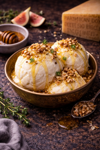 Parmigiano Reggiano-Gelato med honung och nötter