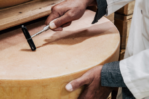 Den har en fast, krämig textur med subtil nötig sötma, toner av hasselnöt, karamelliserad lök, färskt hö och en fin sälta – perfekt balanserad umami som blir djupare med åldern.